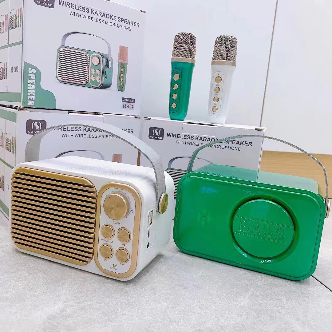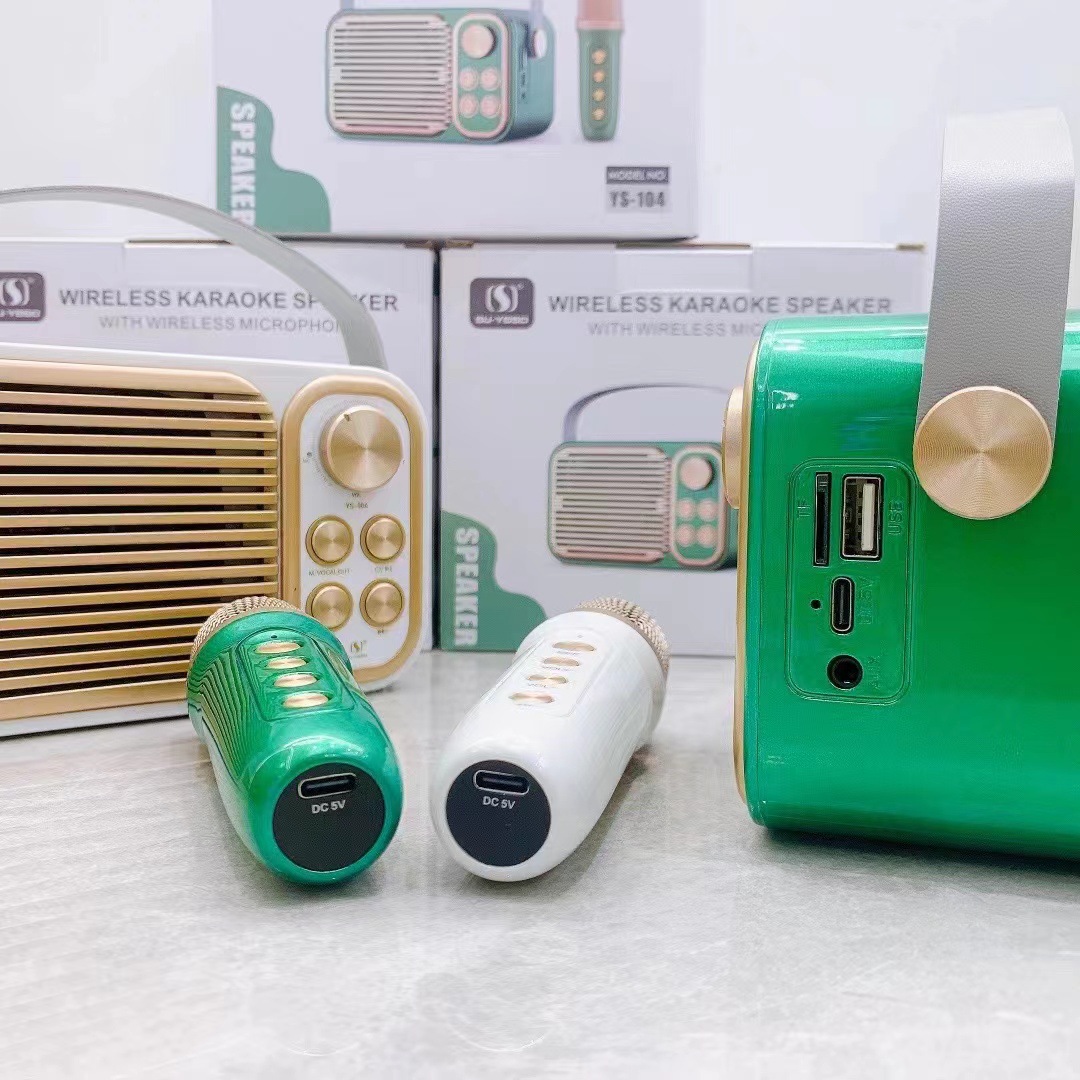 - Loa YS-104 dòng loa có kích thước khá là nhỏ gọn, giúp cho việc di chuyển trở nên dễ dàng và thuận tiện. Với kích thước 15x9x8cm bạn có thể mang đi chơi, du lịch, ca hát cùng gia đình