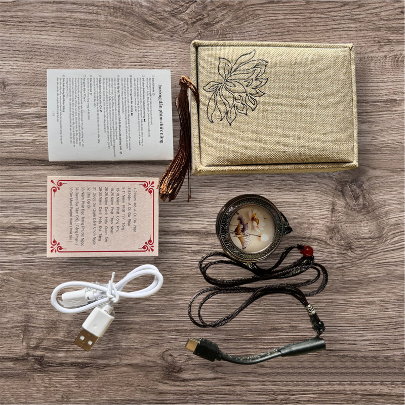 ● Chức năng: nghe kinh - niệm phật - có sẵn bài kinh (35 bài mặc định) - cổng cắm tai nghe - khe gắn thẻ nhớ - đèn led mặt trước