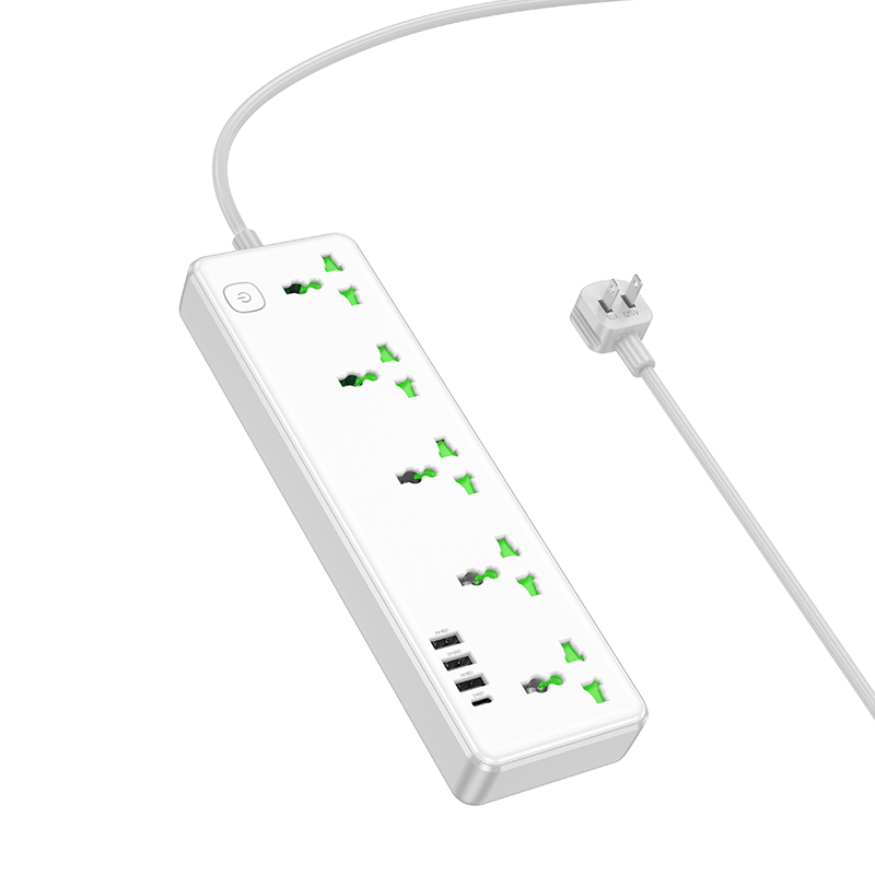 Ổ cắm điện thông minh Hoco AC13 / AC13A 3 cổng USB, 1 cổng typeC, 5 Socket, công suất 2500W (màu Random)