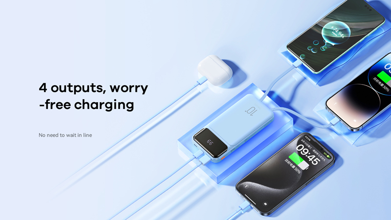 Điểm đặc biệt trên pin tích hợp sẵn 3 sợi cáp sạc trong đó: 2 cáp sạc ra là typeC (sạc được các dòng andoird và cả iTáo 15) và LN cho iTáo (từ 14 Prm trở xuống), 1 cáp USB (sạc vào cho pin dự phòng). Ngoài ra trên thân pin còn tích hợp thêm 3 cổng sạc: 1 cổng typec sạc ra (out), 1 cổng sạc typec sạc vào pin (in), 1 cổng USB sạc ra (out).