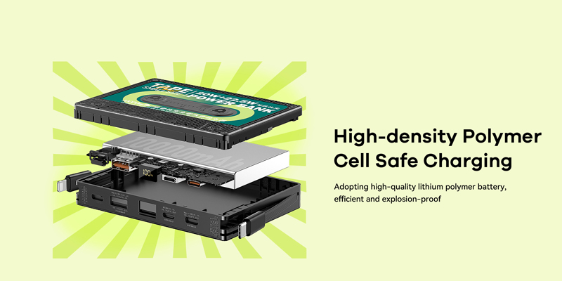 Nếu nhìn sơ qua người dùng sẽ rất dễ nhầm lẫn đây là 1 chiếc băng nghe nhạc thời xưa (không khác gì một chiếc băng cassette). Toàn bộ lớp vỏ bên ngoài được hoàn thiện từ chất liệu nhựa PC / Fireproof V0 là vật liệu chống cháy có độ bền cao, khả năng chịu lực tốt, chống mài mòn hiệu quả.