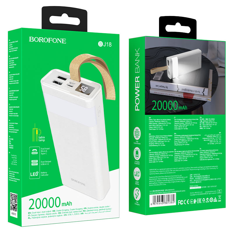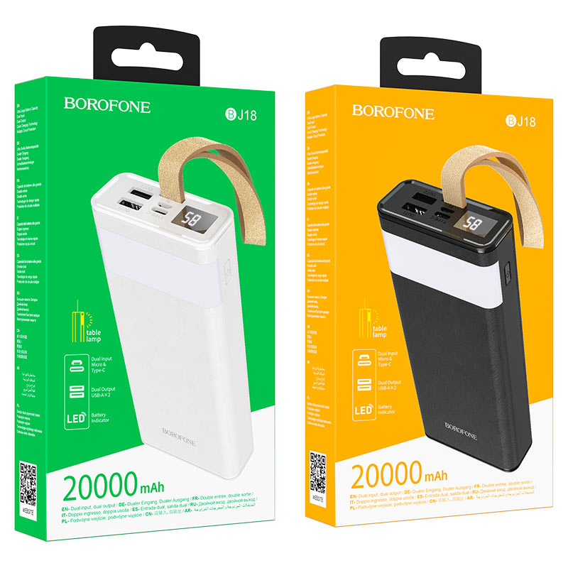 Pin dự phòng Borofone BJ18 20000mAh USB QC3.0 22.5W, PD TypeC 20W, Đèn Led siêu sáng