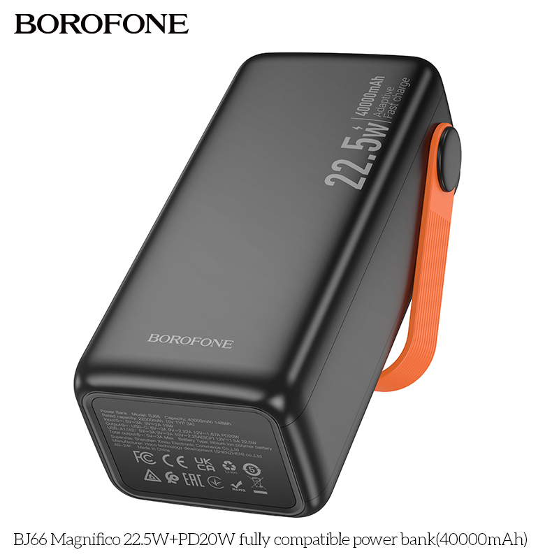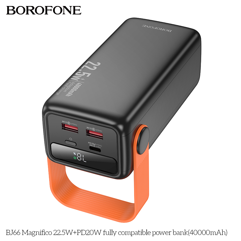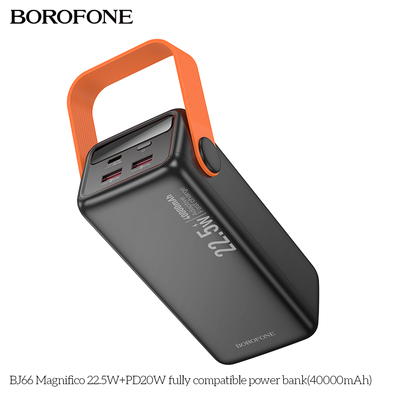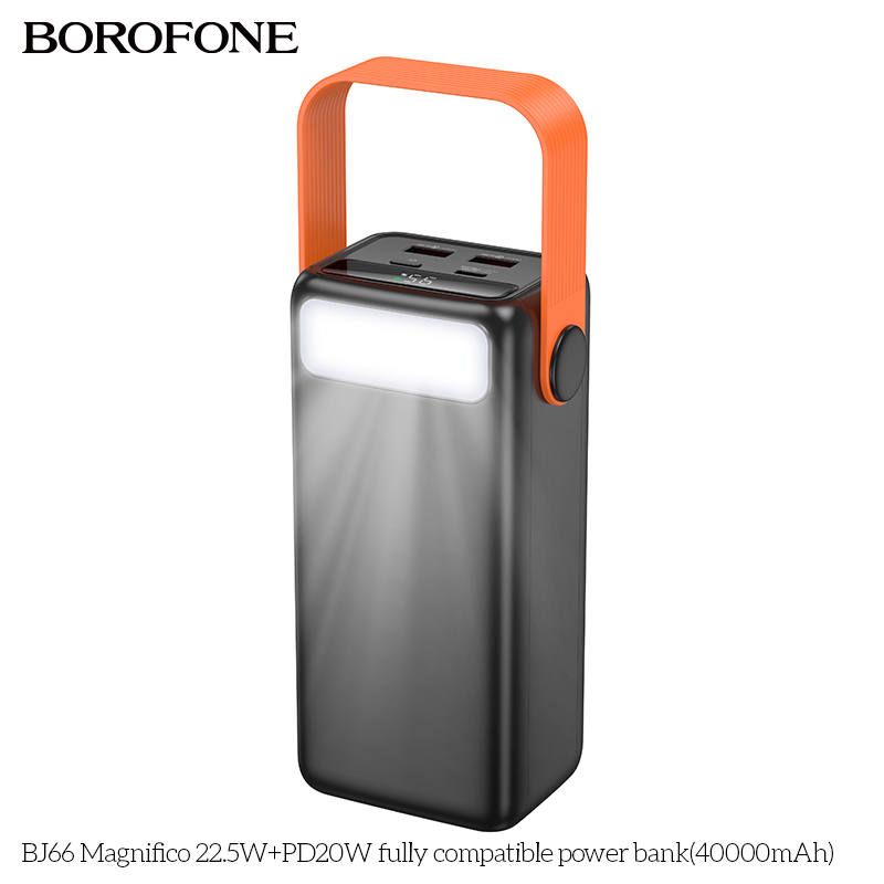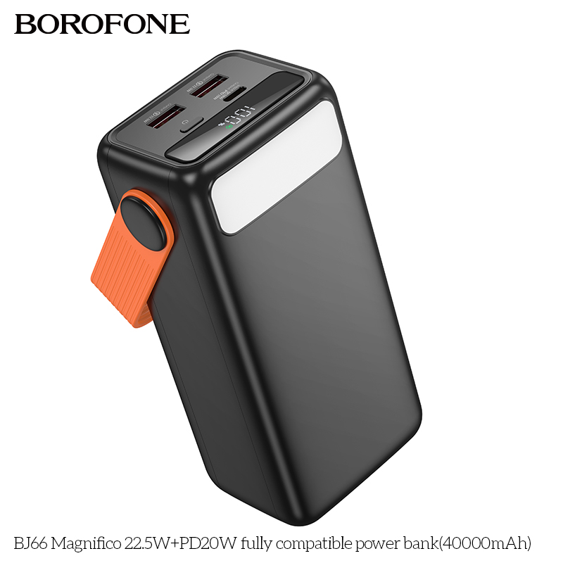 Pin sạc dự phòng Borofone BJ66 với dung lượng khủng 40000mAh (148Wh) mang đến giải pháp hoàn hảo cho nhu cầu sạc thiết bị di động của bạn trong những chuyến đi dài hay khi không có nguồn điện sẵn có. Sản phẩm không chỉ nổi bật với dung lượng lớn mà còn sở hữu nhiều tính năng ưu việt, đáp ứng nhu cầu sử dụng sạc nhanh, an toàn và tiện lợi.