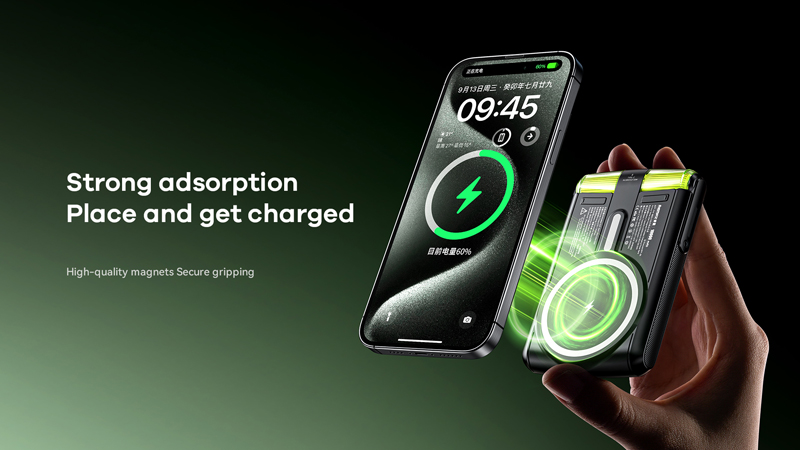 Xung quanh vùng sạc không dây là vòng nam châm từ tính hút dính chắc chắn. Nếu bạn đang sở hữu một chiếc Ai-Phôn 12 - 13 - 14 - 15 (những model này có hỗ trợ mag safe) series thì đây chính là lựa chọn tuyệt vời dành cho bạn.