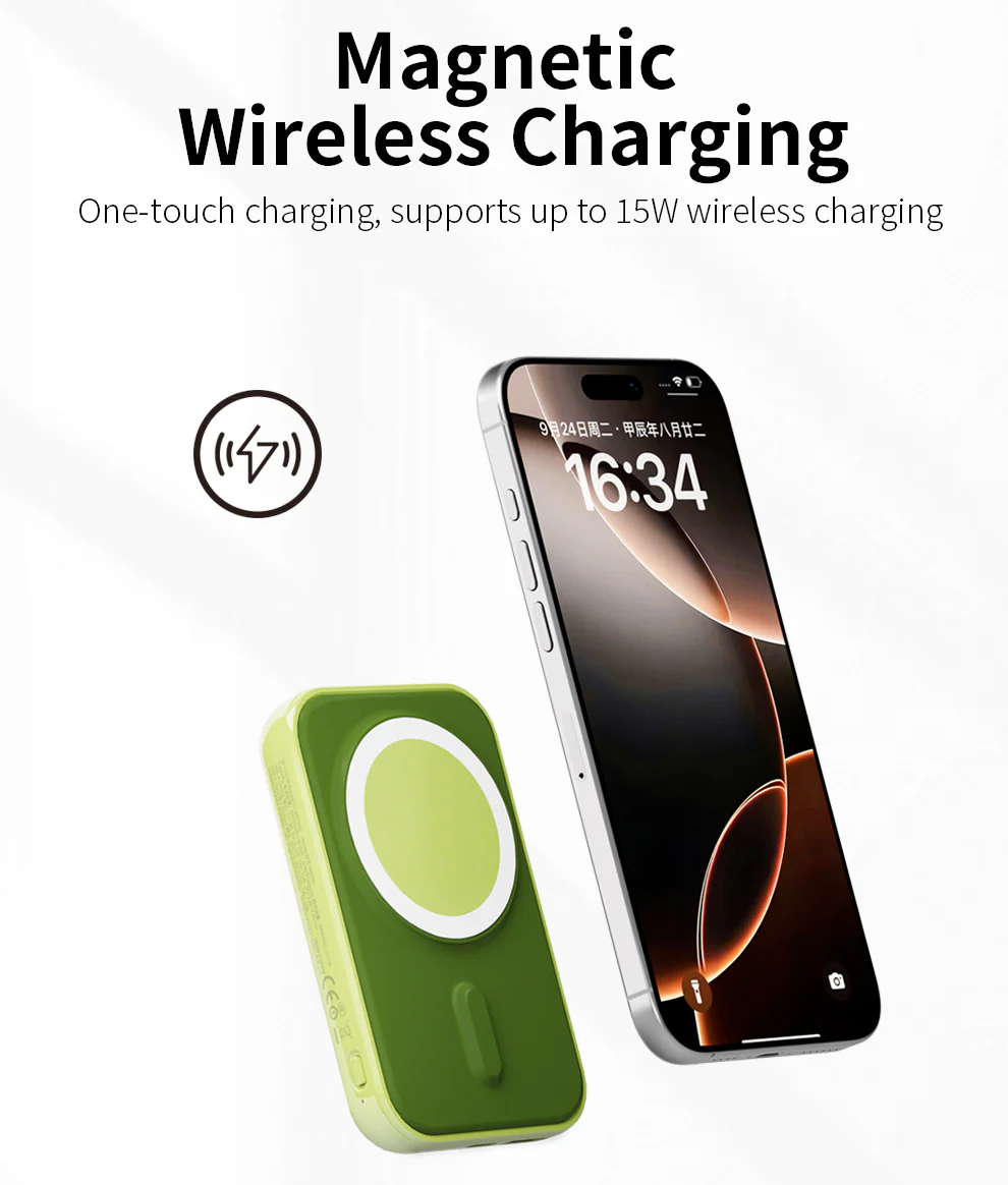 Sạc không dây từ tính, công suất đầu ra 15W.