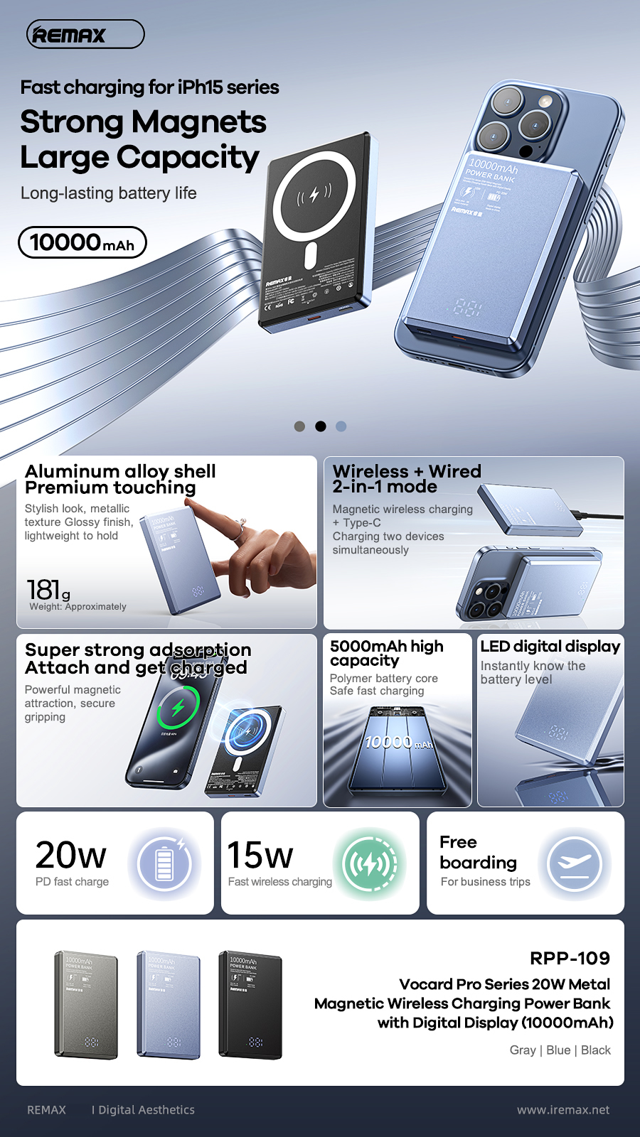 1. Mỏng và nhẹ, chất liệu hợp kim nhôm, cầm nắm thoải mái, dễ dàng mang theo; Công suất lớn, độ bền cực cao