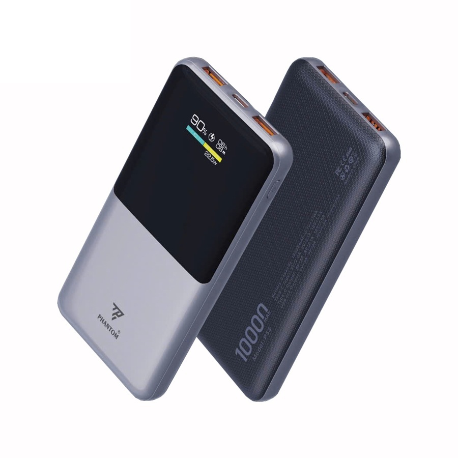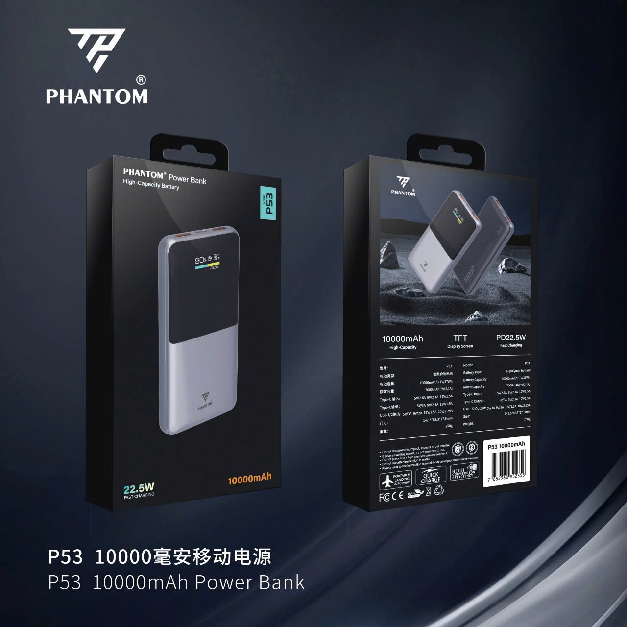 Pin dự phòng PHANTOM P53 10000mAh sạc nhanh QC 3.0 22.5W và TypeC PD 20W, Màn hình báo pin và dòng sạc (Xám)