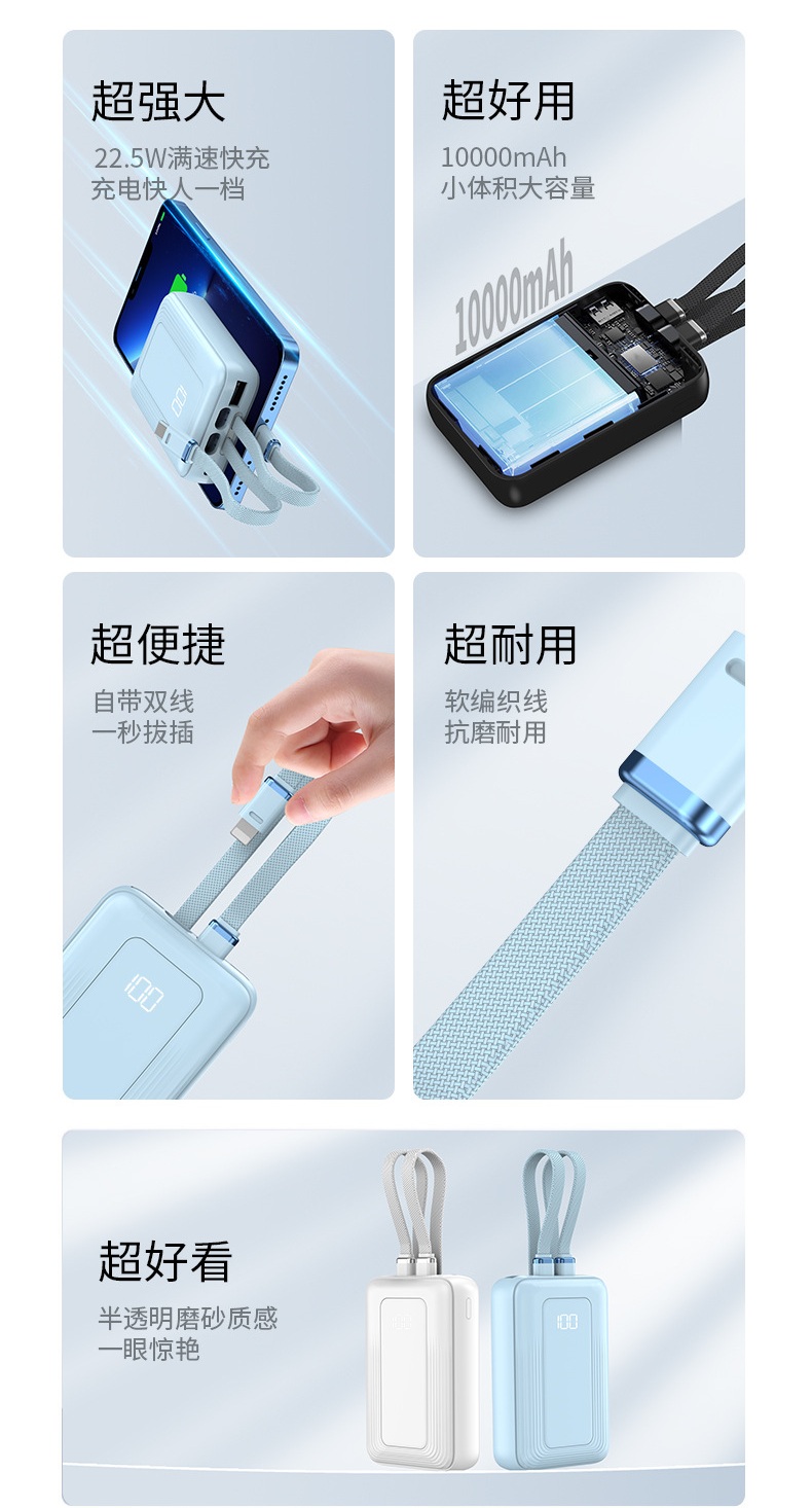 Pin dự phòng PHANTOM P58 20000mAh / P57 10000mAh TypeC PD 20W & USB-A QC 3.0 22.5W, Kèm 2 Cáp sạc ra