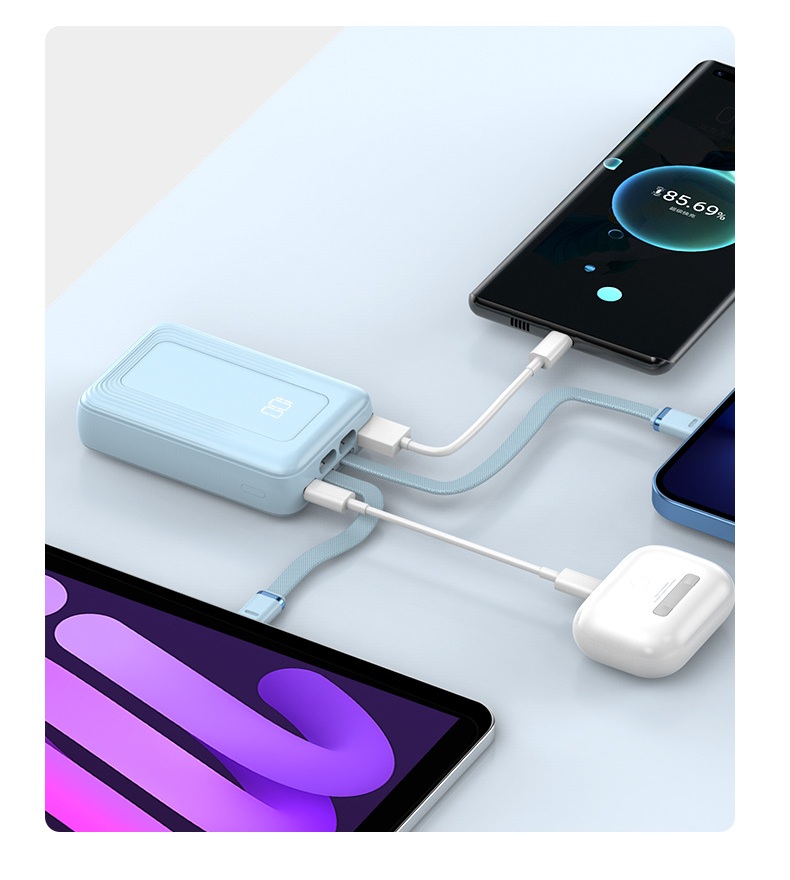 Pin sạc dự phòng PHANTOM P51 / P52 được trang bị 5 cổng đầu ra bao gồm Type-C, USB1 và USB2 và 2 cáp đi kèm pin TypeC và LN, mang đến khả năng sạc nhiều thiết bị cùng lúc. Cổng đầu vào Type-C và MicroUSB hỗ trợ nhiều mức điện áp giúp sạc lại pin nhanh chóng và hiệu quả.