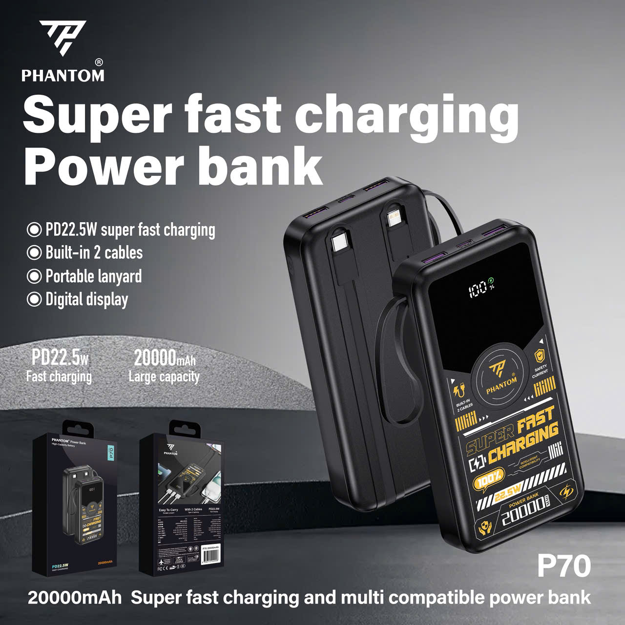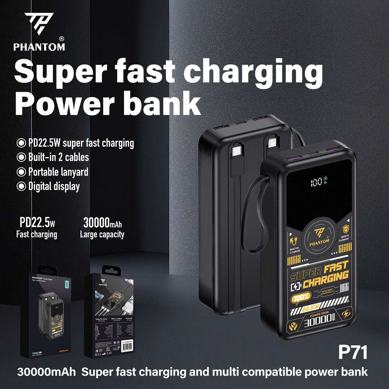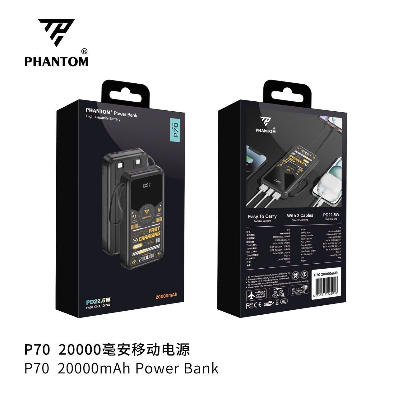PHANTOM P69 / P70 / P71 sở hữu cell lithium polymer có dung lượng 100000mah, 20000mAh và 30000mA tùy chọn, đủ để sạc nhiều lần cho điện thoại thông minh hoặc các thiết bị khác. Với tuổi thọ Cục Sạc DP lên đến ≥300 lần sạc, bạn có thể sử dụng sản phẩm trong thời gian dài mà không phải lo lắng về việc thay thế Cục Sạc DP.