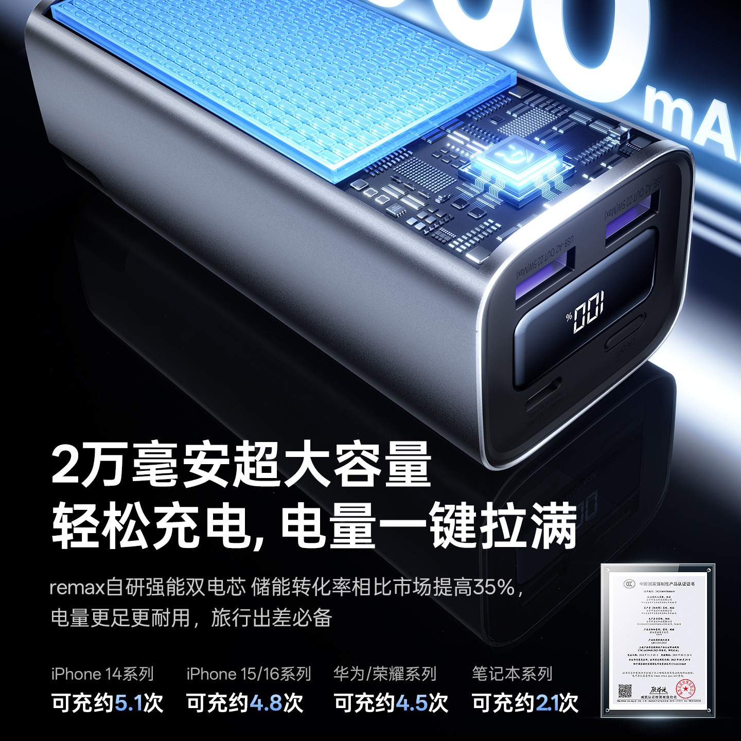 5. Dung lượng định mức: >60% ~12215mAh (5V⎓3A)
