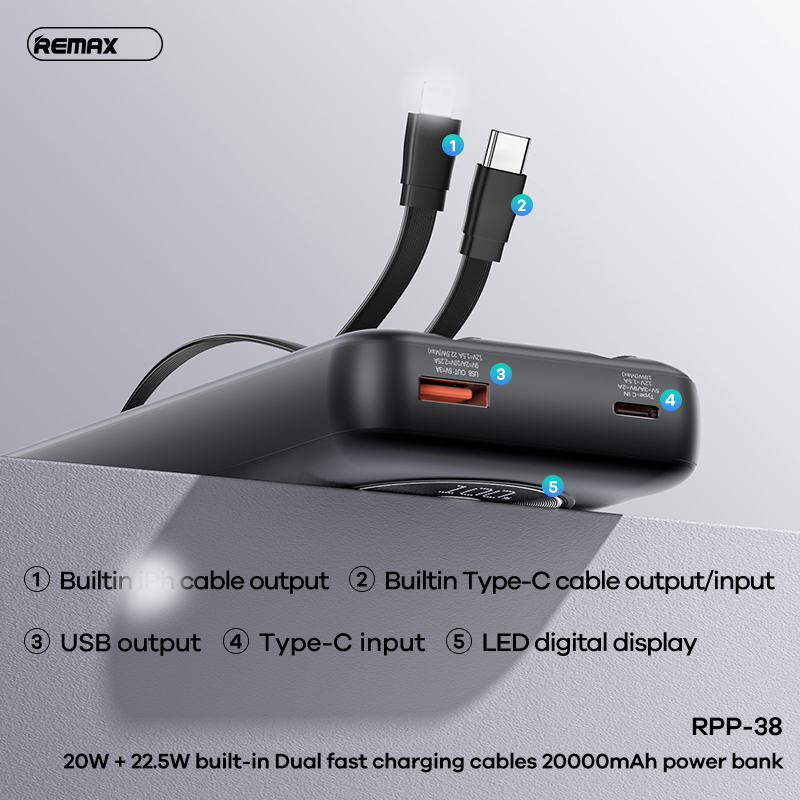 2. Tích hợp cáp sạc nhanh kép, không cần mang thêm cáp khi đi chơi, cáp Type-C hỗ trợ sạc nhanh hai chiều.