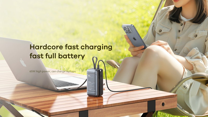 Nhà sản xuất đã trang bị gồm 1 cổng USB, 1 cổng Type C, cáp sạc tích hợp 1 LN và 1 typeC (có thể tháo rời). Trong đó cổng typeC vừa hỗ trợ sạc in out (max 65W, có hỗ trợ tất cả iTáo hiện nay, kể cả 15 prm), cáp typeC tích hợp cũng có tính năng tương tự như cổng typeC sạc in out 60W, cổng USB sạc out max lên đến 60W (hỗ trợ hầu hết các chuẩn sạc nhanh hiện nay kể cả super fast charge). Và cuối cùng là cáp LN sạc out max 2.4A.