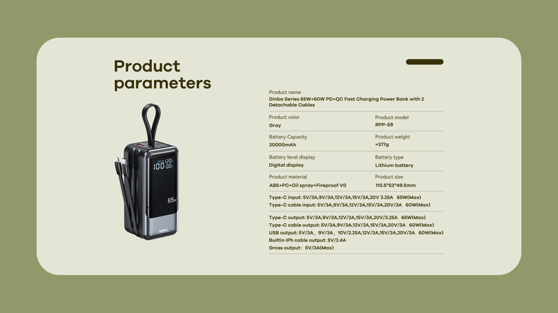 Không chỉ sở hữu nhiều cổng kết nối, pin sạc dự phòng Remax RPP-59 còn được trang bị công suất lớn lên đến 65W giúp cung cấp năng lượng nhanh chóng cho điện thoại, máy tính bảng, Mac và laptop....tương ứng với dòng sạc 20V 3.25A. Gần như có thể cân hết mọi thể loại thiết bị hiện nay trên thị trường.