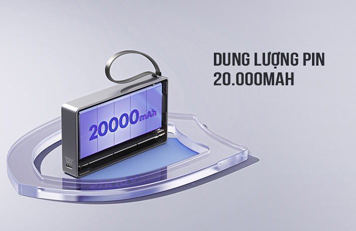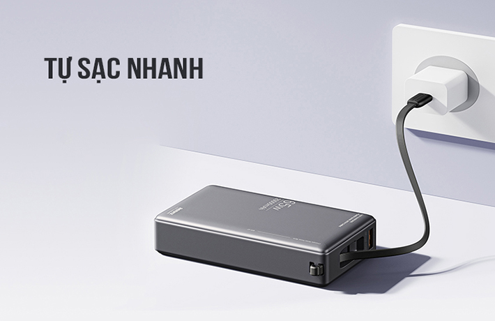 Trên thân pin tích hợp 1 cổng typeC , 1 cổng USB và 1 cáp typeC. Trong đó cổng typeC và cáp typeC đều hỗ trợ sạc đảo chiều (sạc ra thiết bị và sạc vào cho pin) cả 2 đều hộ trợ công suất max lên đến 65W, còn cổng USB sạc ra max công suất 22.W. Bạn có thể sạc cùng lúc 3 thiết bị và giúp rút ngắn thời gian sạc đầy giúp đảm bảo cung cấp năng lượng cho thiết bị của bạn một cách tiện lợi nhất.