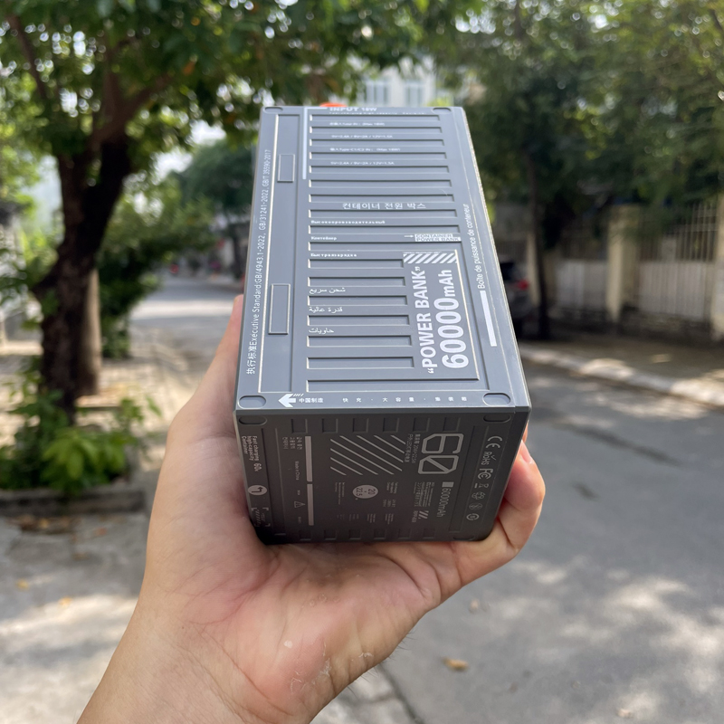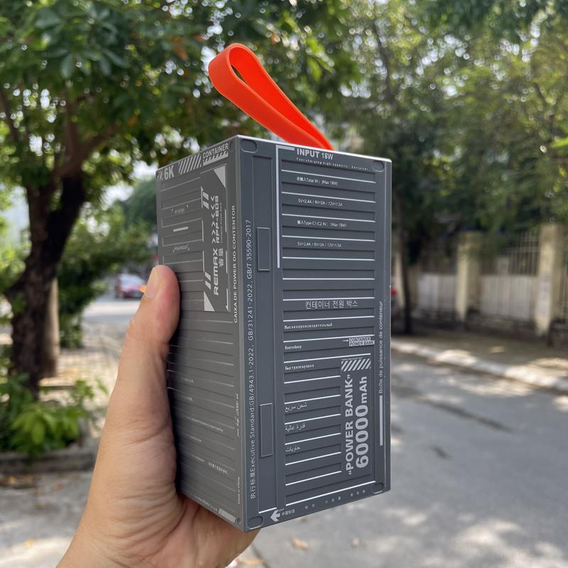 Pin sạc dự phòng 60000mAh Remax RPP-609 có kiểu dáng như thùng container với kích thước 145 x 78 x 72.5mm cùng trọng lượng chỉ 1200g.