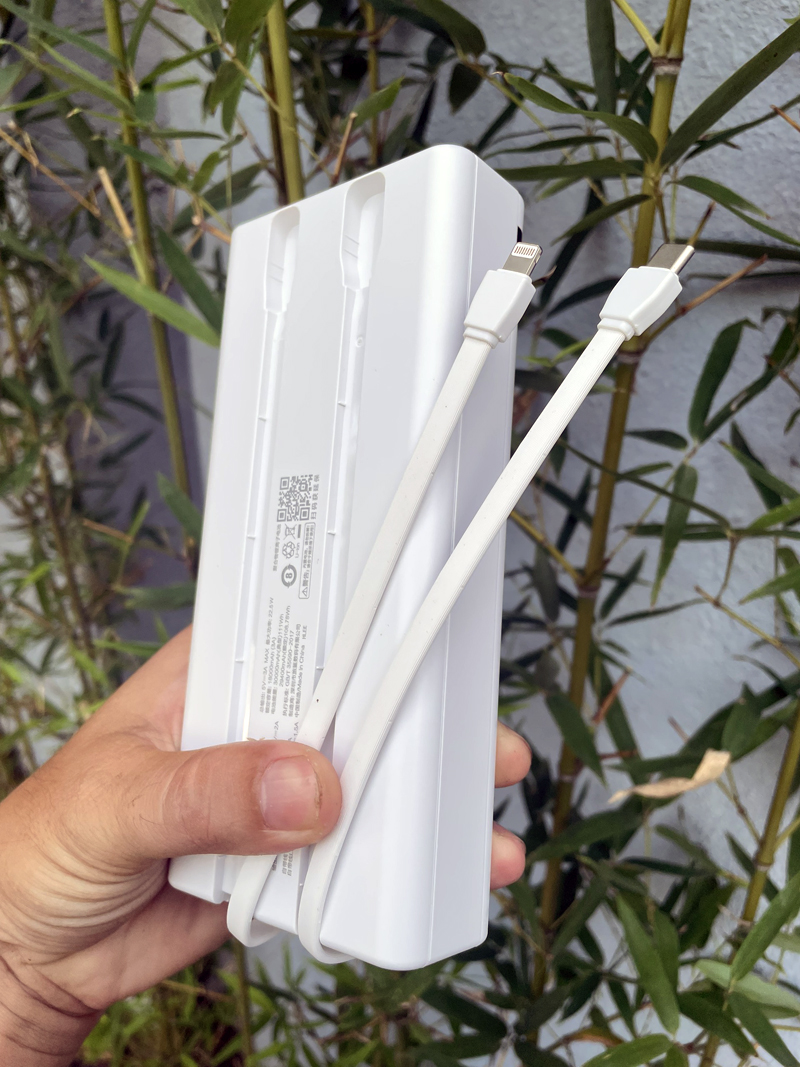 ● Tích hợp 5 cổng sạc (1 cổng USB, 1 cổng typeC, 1 cổng Lighting, 1 cáp typeC, 1 cáp Lighting)