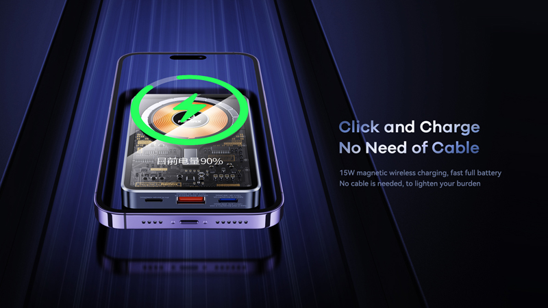 Remax RPP-558 còn tích hợp sạc không dây công suất lớn 15W giúp bạn có thể dễ dàng sạc lại các thiết bị hỗ trợ công nghệ sạc không dây một cách nhanh chóng và tiện lợi.