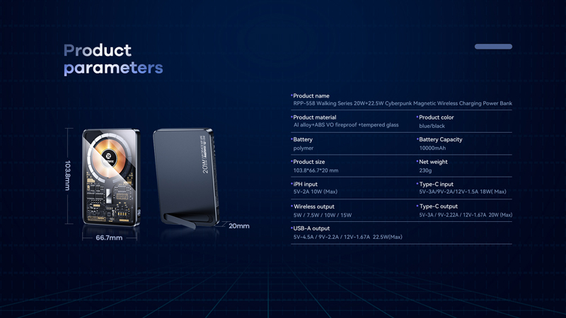 Remax RPP-558 còn được trang bị 1 cổng USB Output 22.5W và 1 cổng TypeC In/out (vừa sạc ra thiết bị vừa sạc vào pin), và 1 cổng LN in. Và tích hợp thêm chức năng sạc không dây wireless 15W.