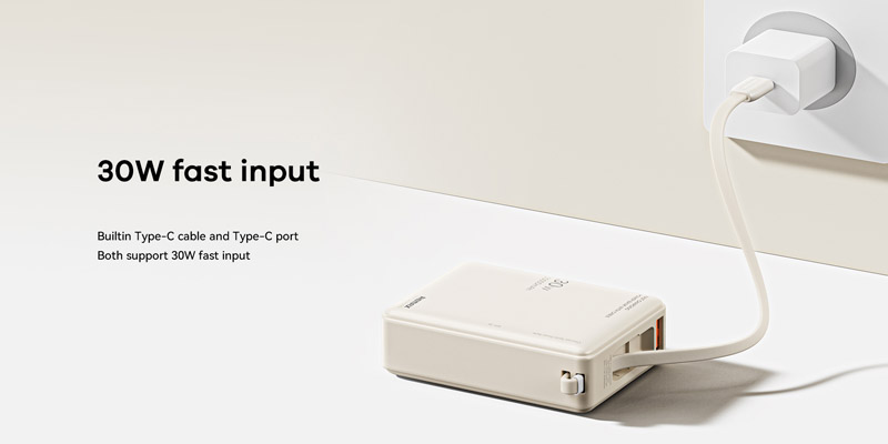 Trên thân pin tích hợp 1 cổng typeC , 1 cổng USB và 1 cáp typeC. Trong đó cổng typeC và cáp typeC đều hỗ trợ sạc đảo chiều (sạc ra thiết bị và sạc vào cho pin) cả 2 đều hộ trợ công suất max lên đến 30W, còn cổng USB sạc ra max công suất 22.W. Bạn có thể sạc cùng lúc 3 thiết bị và giúp rút ngắn thời gian sạc đầy giúp đảm bảo cung cấp năng lượng cho thiết bị của bạn một cách tiện lợi nhất.