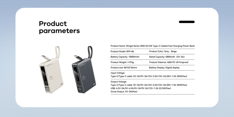 Mẫu pin đặc biệt chuyên dùng cho iTáo 15 trở lên, với công suất sạc siêu nhanh lên đến 30W (có thể sạc max công suất đầy pin trong tầm 1h30 - 1h45p), với vẻ ngoài khả gọn chỉ bằng 1/2 so với 1 điện thoại thông thường (kích thước 86 x 62 x 26mm và cân nặng 193 gram). RPP-86 dùng lõi pin Lithium Polymer (Li-Po) chất lượng cao vừa đảm bảo tốc độ sạc nhanh vừa an toàn