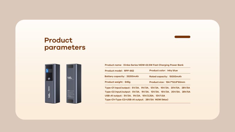Đặc biệt chuẩn sạc nhanh được trang bị cho mẫu pin RPP-662 công suất sạc lên đến 140W, có thể đáp ứng sạc hầu hết các thiết bị kể cả laptop mới nhất trên thị trường thông qua cổng typeC 1 và typeC 2 lên đến 140W cả in lẫn out, với dòng điện này thì những laptop sử dụng nguồn điện 20V - 2A cho đến 28V - 5A thì pin RPP-662 đều có thể đáp ứng.