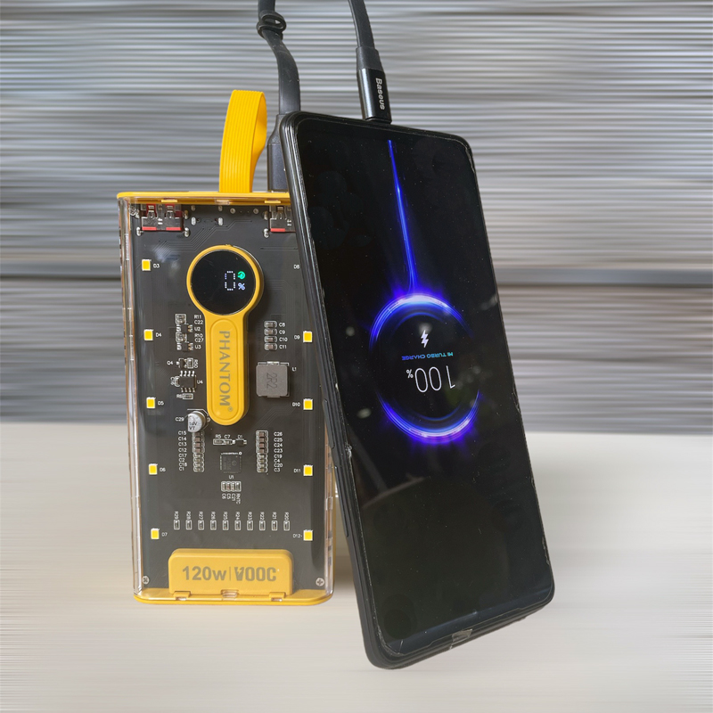 Pin sạc dự phòng 20000mAh PHANTOM P22 có vẻ ngoài trong suốt có thể nhìn rõ các linh kiện bên trong và kích khá gọn chỉ 134 x 69 x 37mm cùng trọng lượng chỉ 415g.
