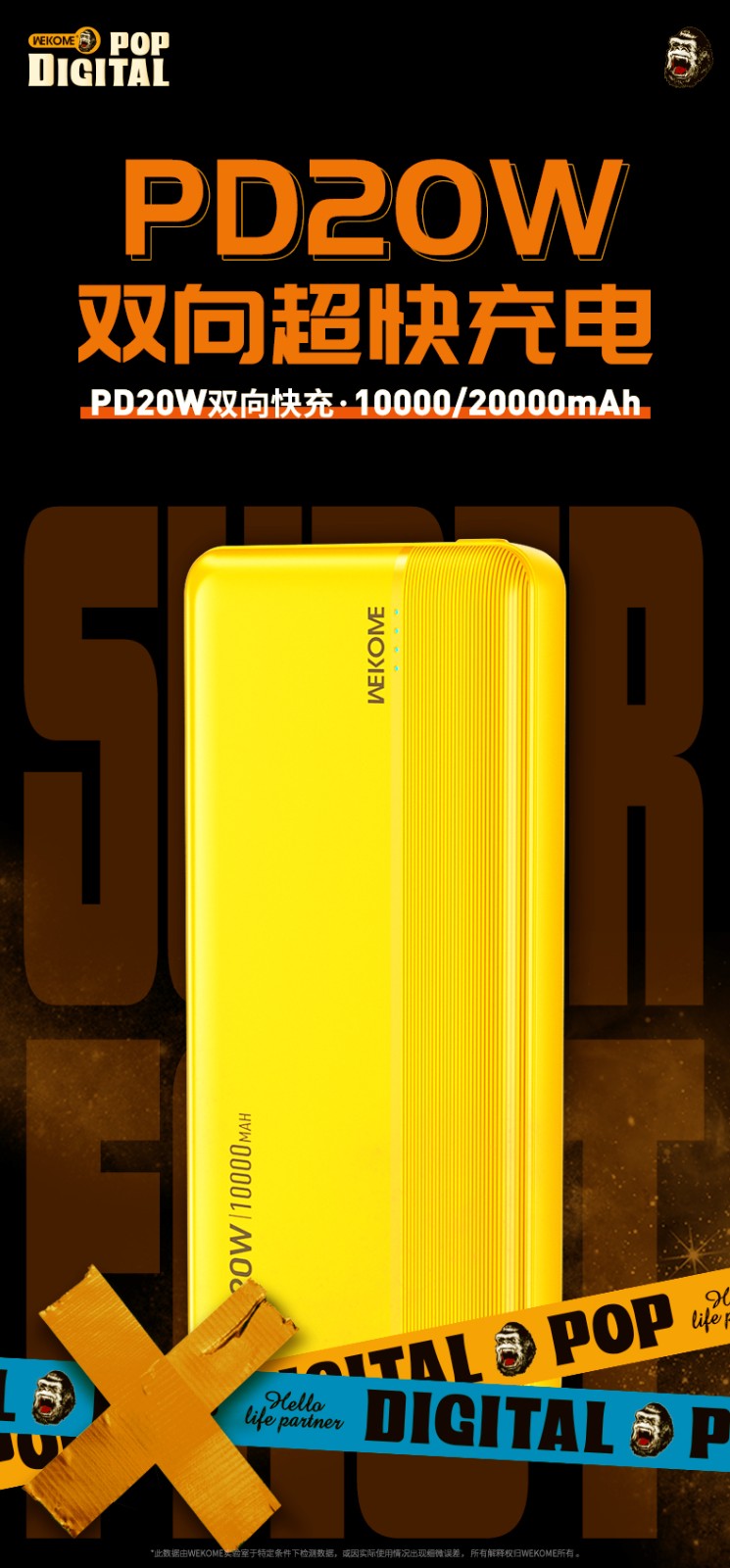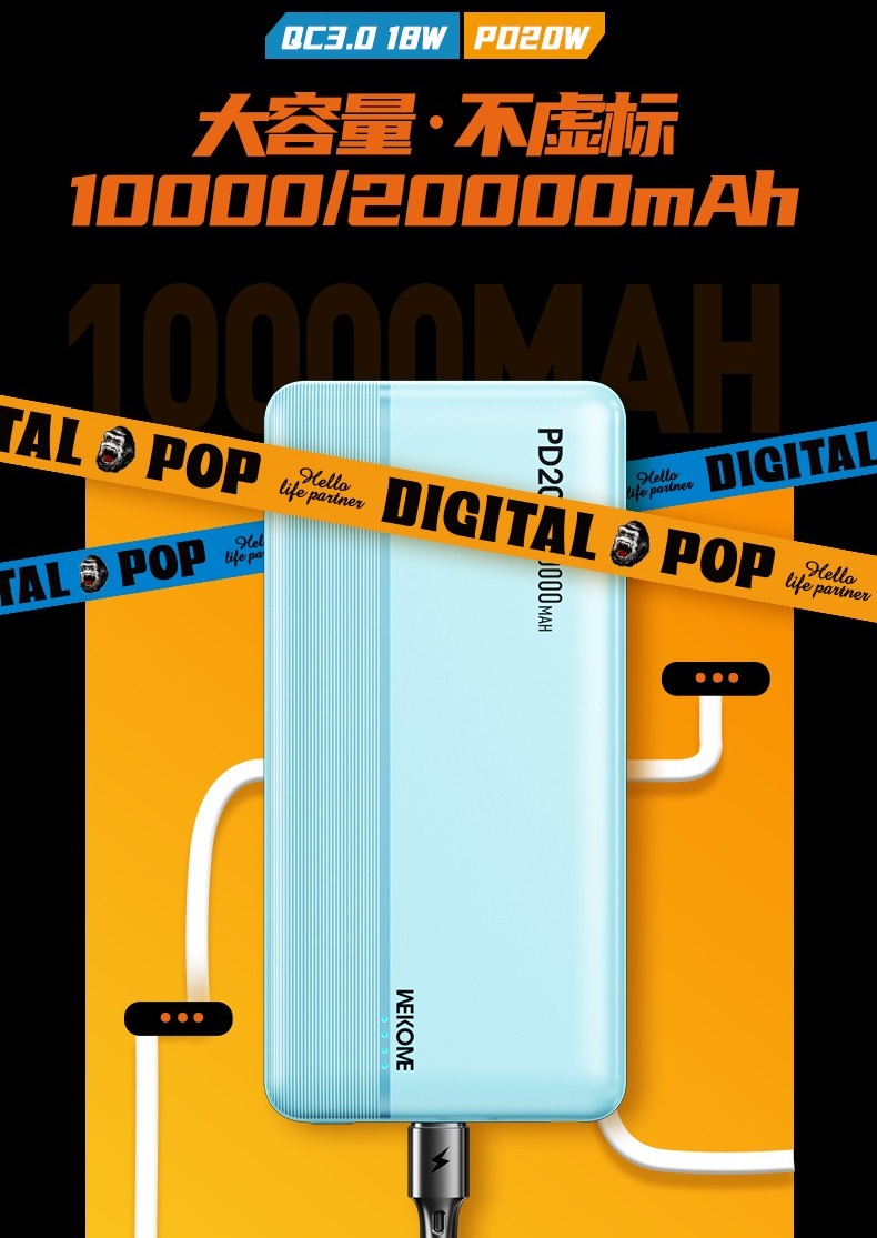 Pin dự phòng Wekome WP-04 20000mAh TypeC PD 20W & 2 USB-A QC 3.0 18W