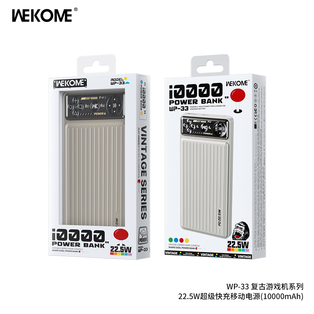 Pin dự phòng WEKOME WP-33 10000mAh USB-A QC 3.0 22.5W, TypeC PD 20W