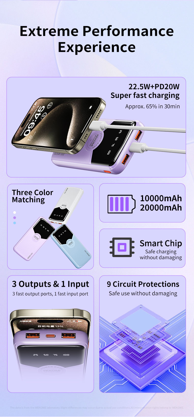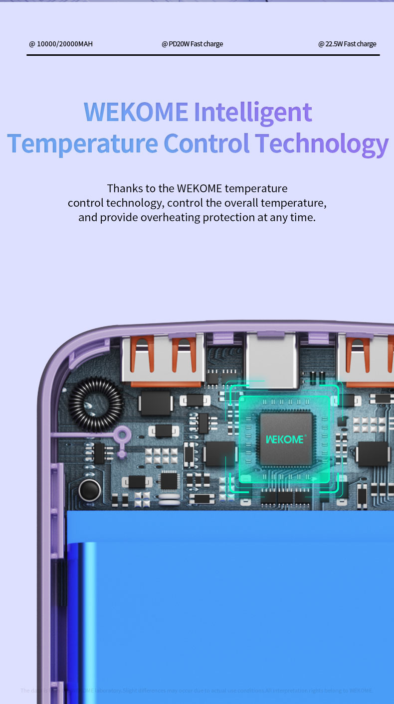 Pin sạc dự phòng WEKOME WP-43 hoạt động ổn định trong khoảng nhiệt độ từ 10 đến 30°C, phù hợp với điều kiện khí hậu của nhiều quốc gia và đảm bảo hiệu suất tối ưu ngay cả trong các môi trường khắc nghiệt.