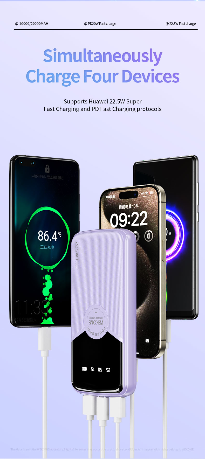Pin dự phòng Wekome WP-43 20000mAh / 10000mAh TypeC PD 20W & 2 USB-A QC 3.0 22.5W