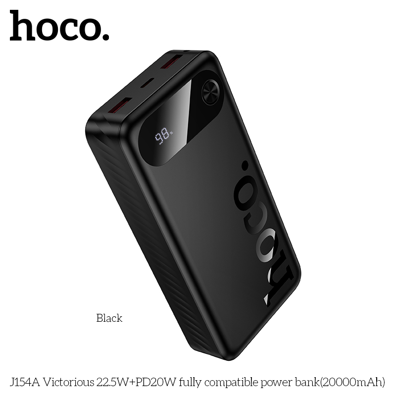 Pin sạc dự phòng Hoco J154A 20000mAh TypeC PD 20W & 2 USB-A QC 3.0 22.5W, Màn hình LED