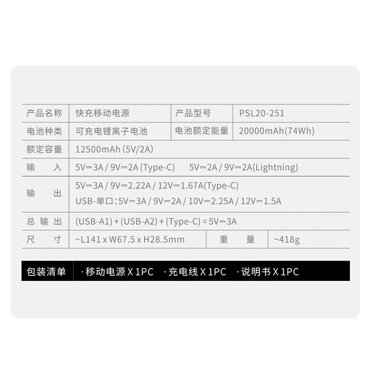Đầu ra: 5V-3A / 9V-2.22A / 12V-1.67A (Type-C); 5V-3A / 9V-2A / 10V-2.25A / 12V-1.5A (USB-A1/A2)