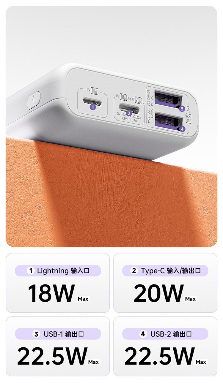 2 Cổng sạc vào 18W: Chỉ mất 7 giờ để sạc đầy pin dự phòng 20.000mAh bằng bộ sạc nhanh 18W