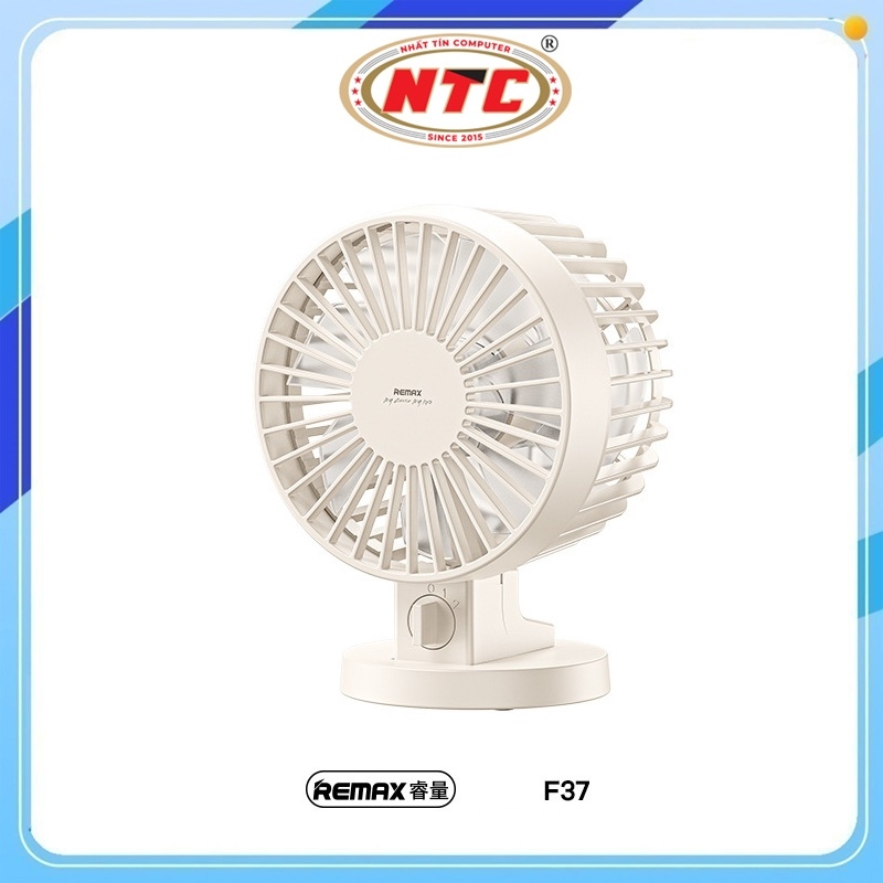 Quạt để bàn dùng nguồn USB Remax F37 2 chế độ gió, gập 30 độ (Trắng)