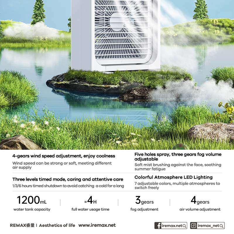 Quạt Phun Sương Tạo Độ Ẩm Để Bàn Remax RS-ZF08 4 cấp gió, 3 cấp phun sương, 5 lỗ thoát, dung tích 1200ml (Trắng)