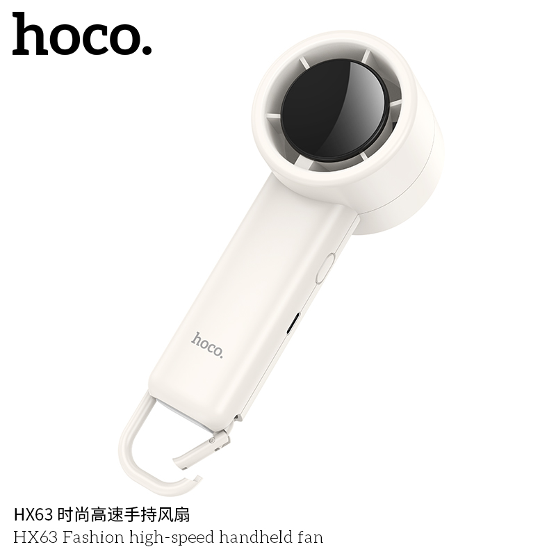 Quạt Tích Điện Cầm Tay Hoco HX63 – 3 Mức Gió, Pin 2000mAh, Thiết Kế Nhỏ Gọn, Màn Hình Kỹ Thuật Số – Kèm Móc Treo