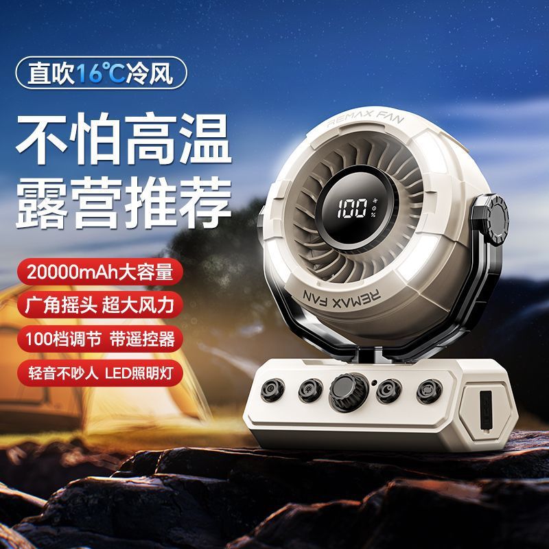 Quạt tích điện Siêu mát Remax RS-ZF09 Pin khủng 20.000mAh, Xoay 180 độ, Hẹn giờ, 100 Mức Gió (Khaki)