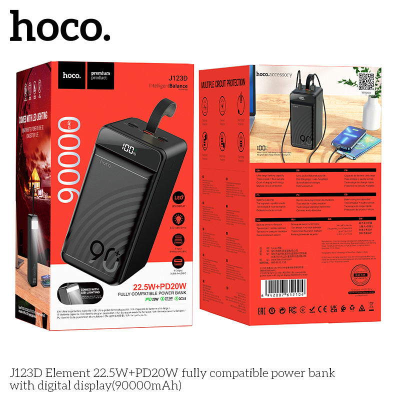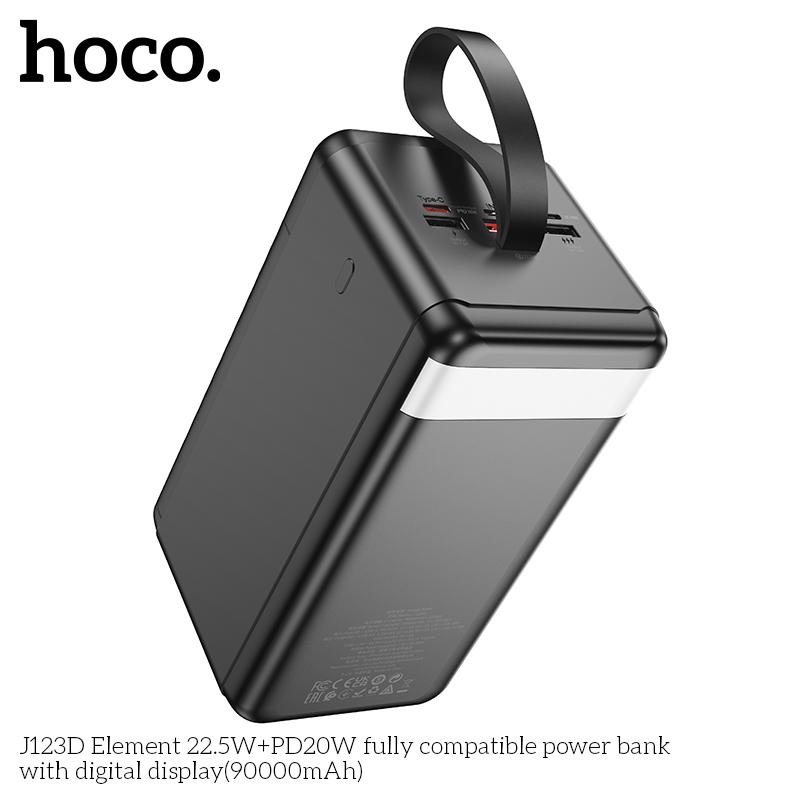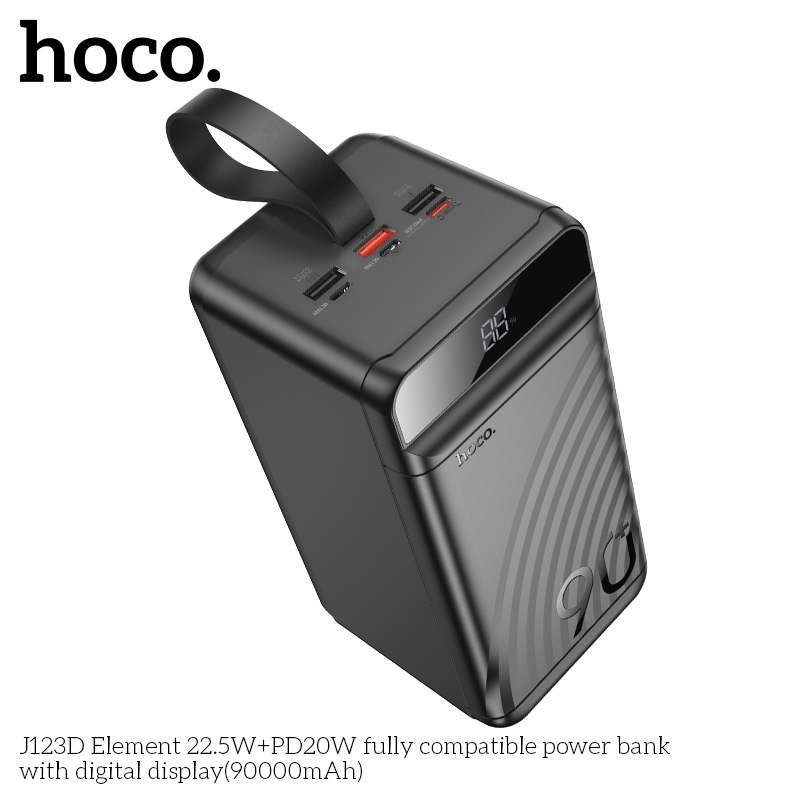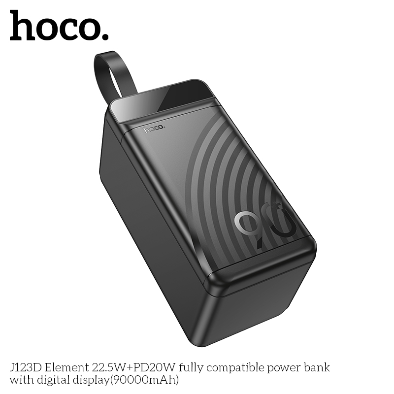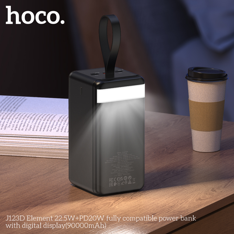 Pin dự phòng Hoco J123D 90000mAh QC 3.0 22.5W và TypeC PD 20W, Có đèn Led