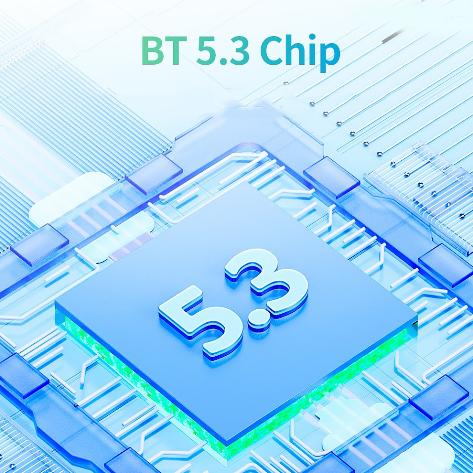 Chuẩn kết nối không dây Bluetooth 5.3 hiện đại nhất cũng được trang bị trên chiếc Headphone giá rẻ này. Đây là chuẩn kết nối không dây với khả năng kết nối nhanh, ổn định và độ trễ cực kì thấp. Hơn nữa, Bluetooth 5.3 cũng giúp tiết kiệm năng lượng pin tối ưu hơn rất nhiều so với các chuẩn Bluetooth trước đó.