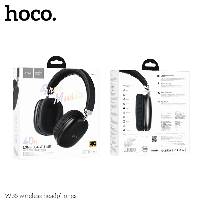 Tai Nghe Bluetooth chụp tai Hoco W35 V5.3, Pin dùng 40H, Hỗ trợ khe thẻ nhớ