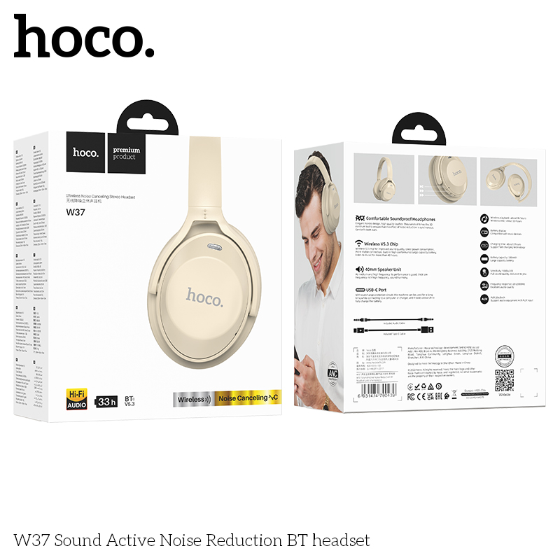 Tai Nghe Bluetooth chụp tai Hoco W37 V5.3, Pin dùng 46H, Chống ồn chủ động ANC