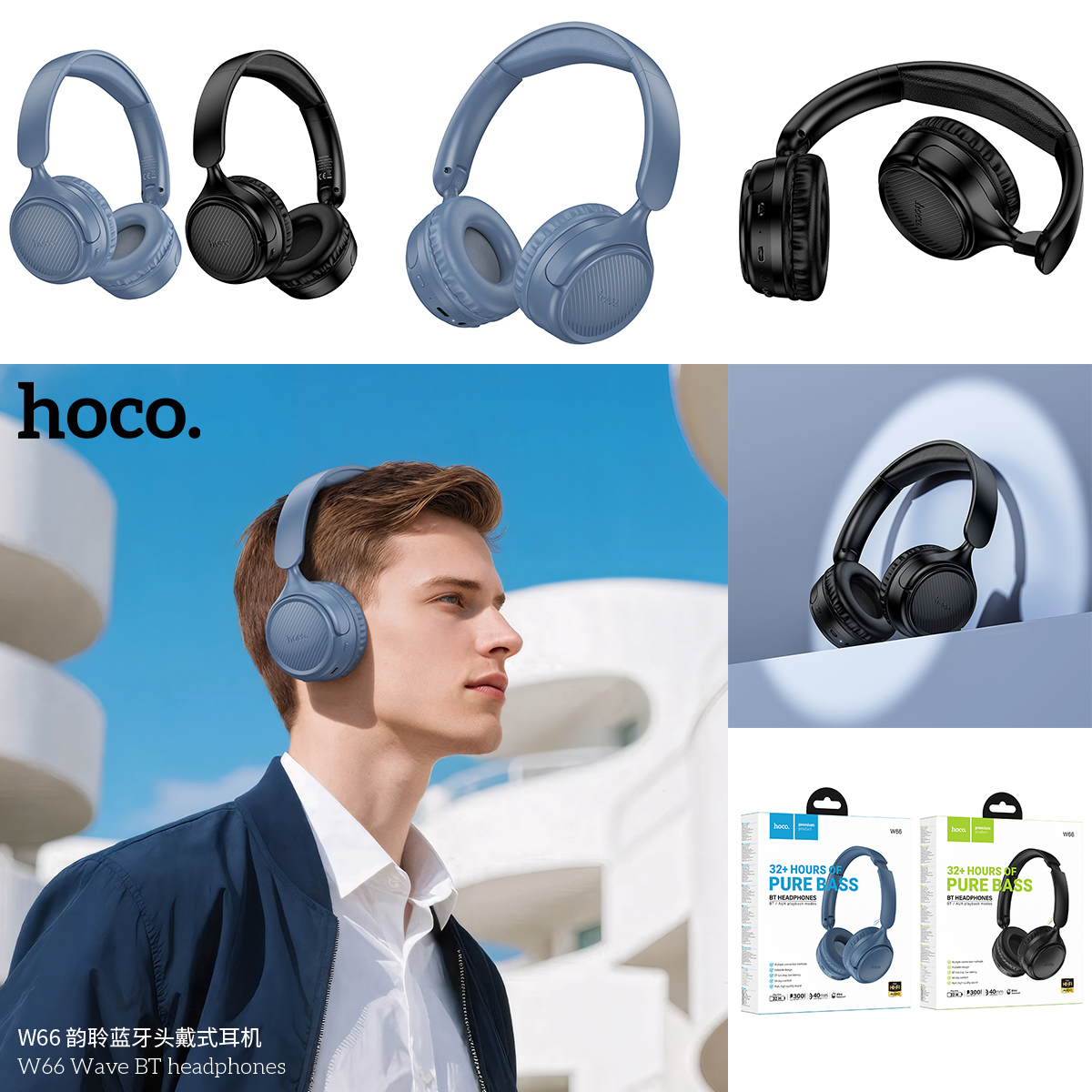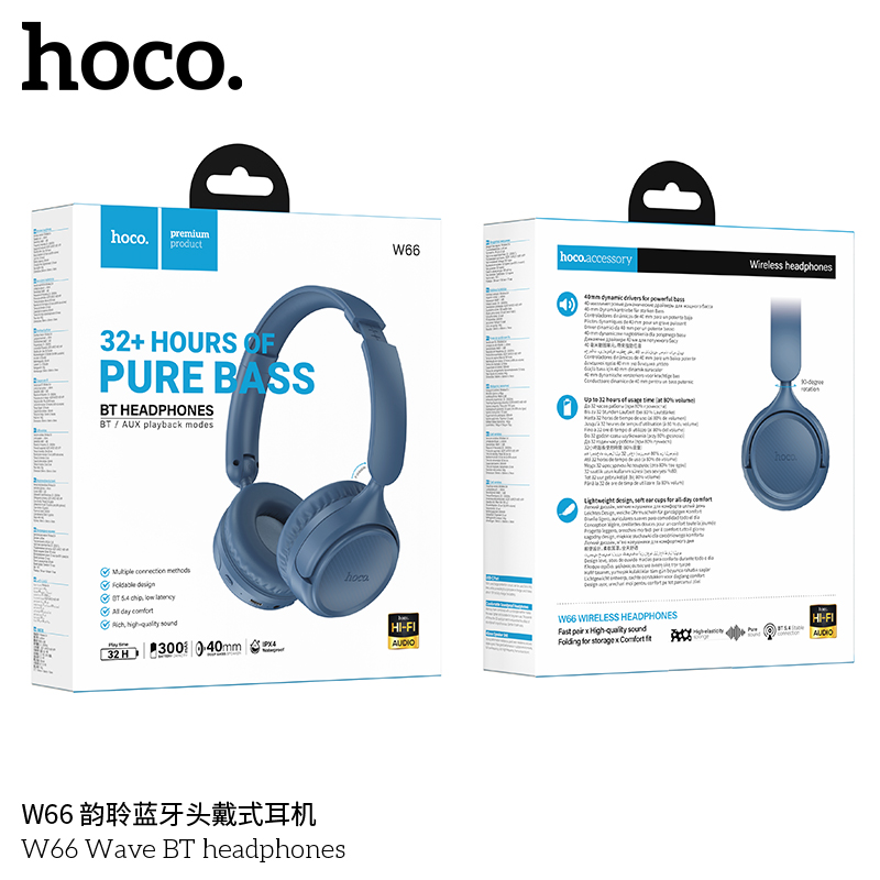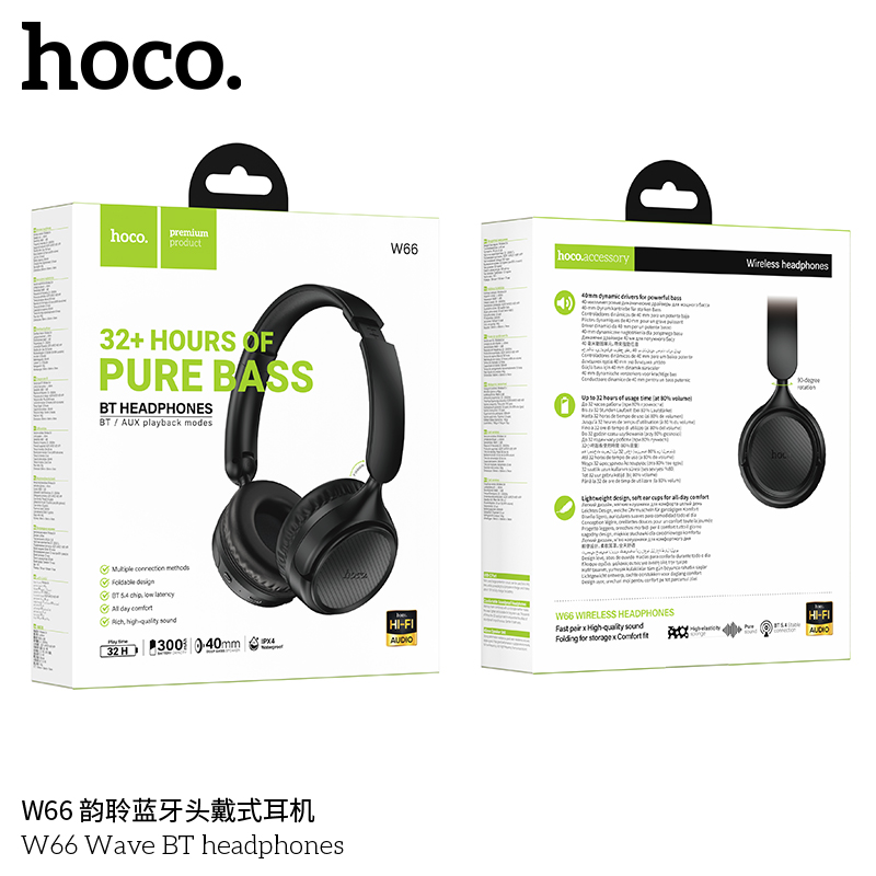 Tai Nghe Bluetooth chụp tai Hoco W66 V5.4, Pin dùng 32H, Thiết Kế nhỏ gọn