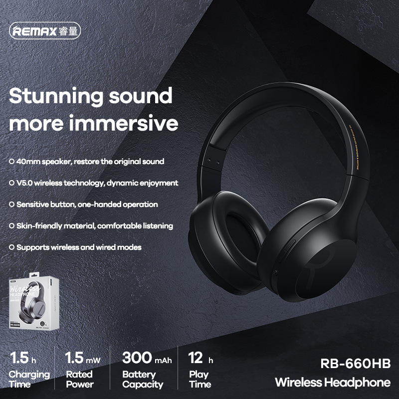 Remax RB-660HB trang bị driver được thiết kế với kích thước tương đối lớn 40mm. Điều này sẽ giúp tối ưu hóa việc cân bằng 3 dải băng tần, điều chỉnh linh hoạt để tạo ra âm thanh tốt nhất ở mọi tần số, đem lại âm bass mạnh mẽ, âm cao trong trẻo và âm trung đầm ấm,....