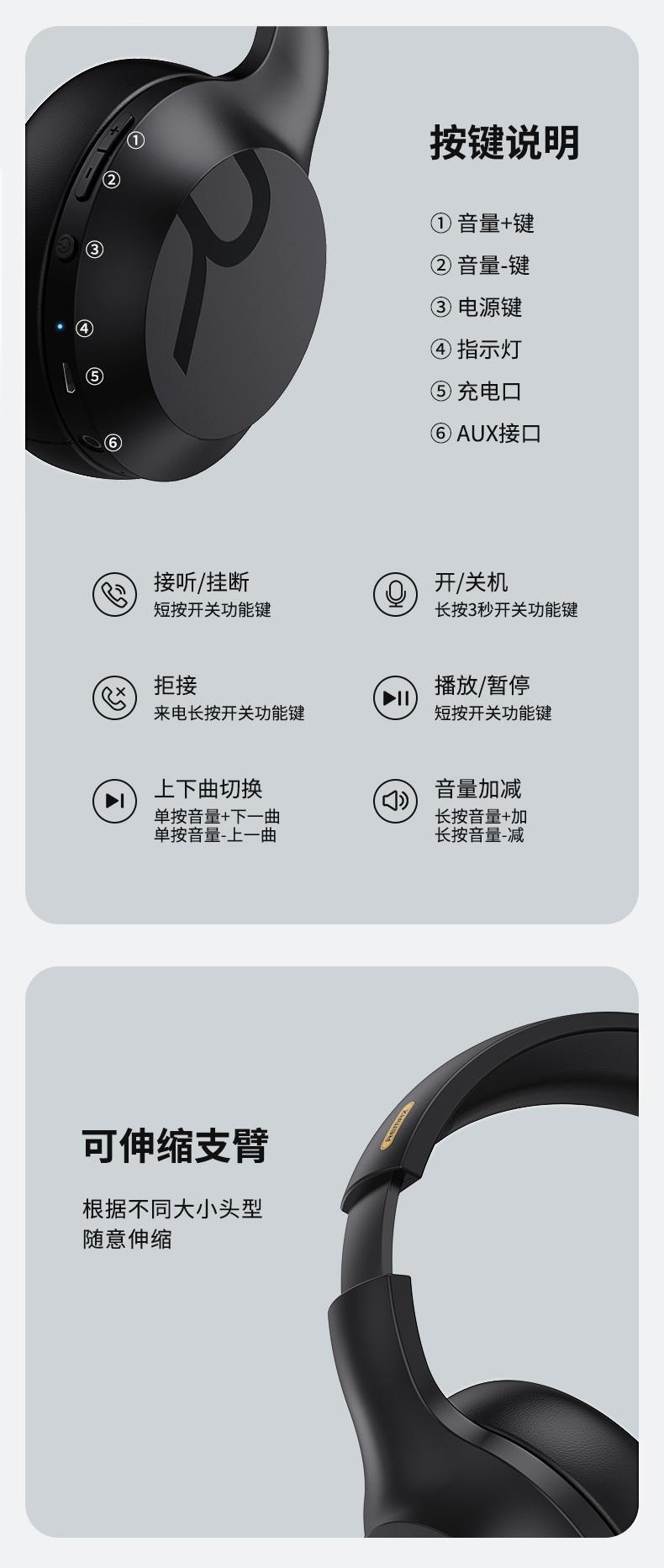 Ngay trên phần tai nghe trang bị thêm nút nguồn, nút tăng/giảm âm thanh, chỉ báo kết nối Bluetooth hoặc sạc pin... giúp người dùng có thể dễ dàng thao tác các hoạt động.