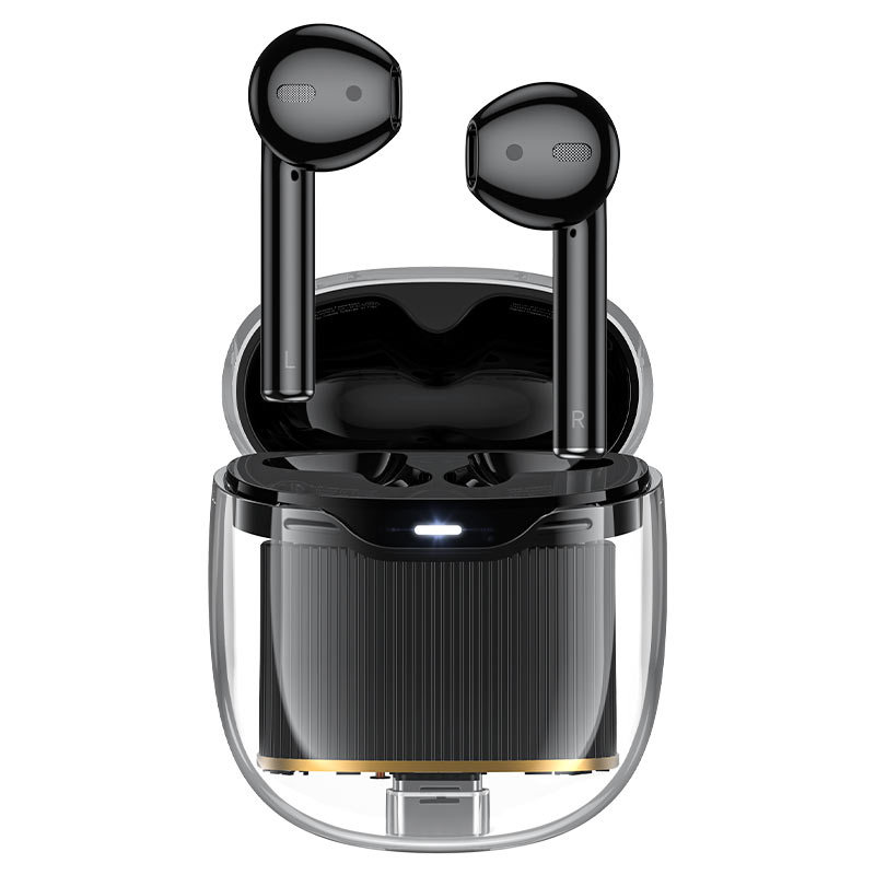 Hoco EW52 không chỉ là tai nghe, mà còn là món phụ kiện thời trang nhờ hộp sạc thiết kế trong suốt độc đáo, lộ rõ các chi tiết mạch điện bên trong, tạo cảm giác hiện đại và cao cấp. Đường viền ánh kim nổi bật làm tăng vẻ sang trọng, đồng thời giúp sản phẩm dễ dàng nổi bật khi sử dụng hàng ngày.
