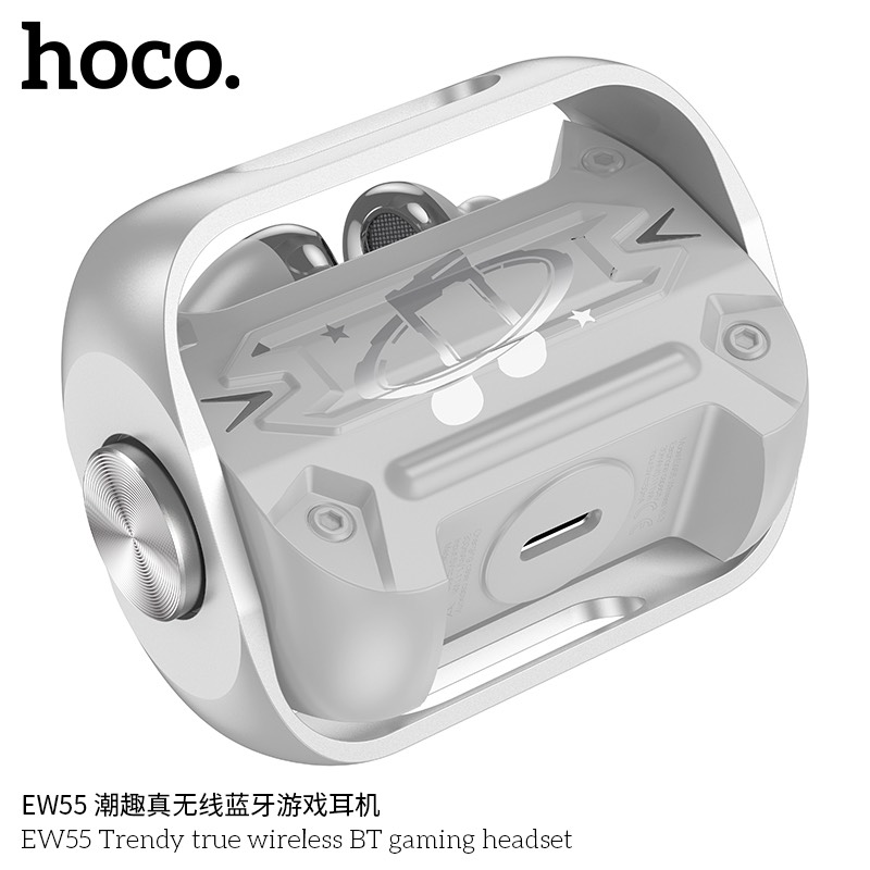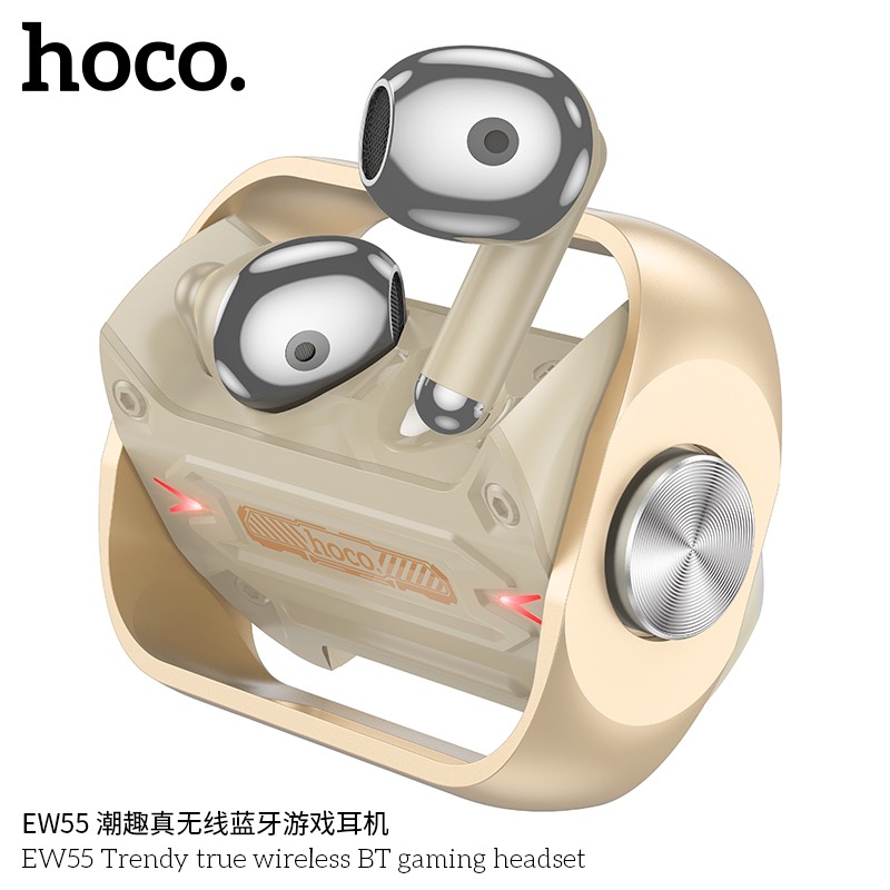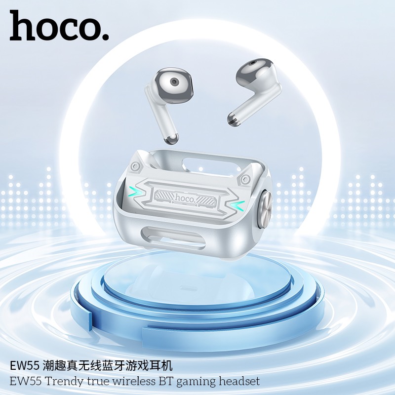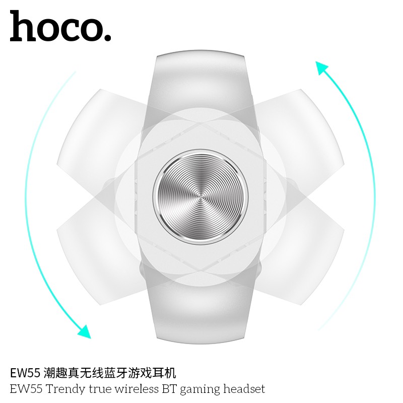 Thiết kế vẻ ngoài siêu ngầu với case sạc dạng trục quay hồi chuyển, cầm nắm cực thích tay, Bluetooth 5.3 mới nhất siêu ổn định và đặc biệt là âm thanh rõ ràng, đáp ứng tốt cho mọi nhu cầu từ nghe nhạc, chơi game đến đàm thoại,...Tai nghe Bluetooth Hoco EW55 chắc chắn là lựa chọn hợp lý nhất cho nhu cầu giải trí, âm thanh của bạn.