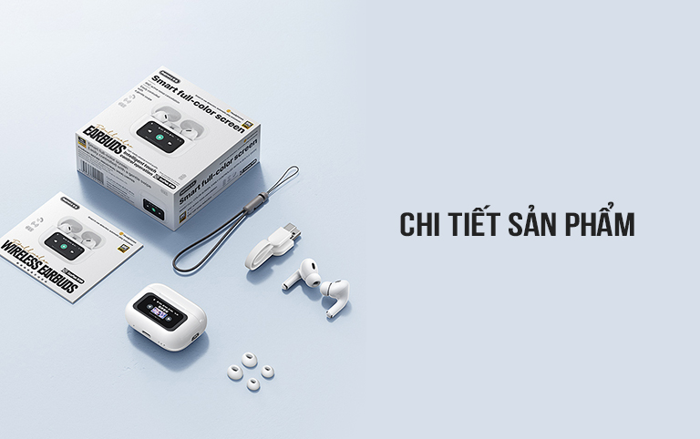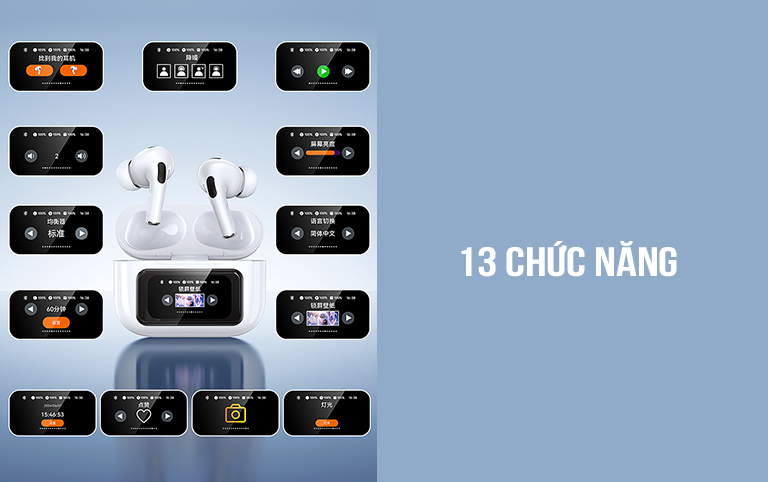 Điểm nổi bật và ấn tượng của W30N chính là màn hình cảm ứng đa màu sắc được bố trí ngay phía trước hộp sạc. Chúng có tới 13 chức năng phong phú để bạn lựa chọn và sử dụng bao gồm: phát nhạc, điều khiển âm lượng, chế độ giảm tiếng ồn, bộ chỉnh âm, đồng hồ báo thức, điều chỉnh độ sáng màn hình, cài đặt ngôn ngữ, thay đổi hình nền màn hình khóa, tìm kiếm tai nghe, cài đặt ngày/ giờ, chụp ảnh, chức năng khác.