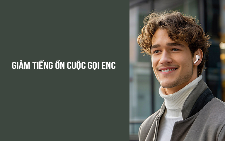 Công nghệ giảm ồn ENC giúp tối ưu hóa chất lượng âm thanh, giảm thiểu nhiễu và tạo ra một không gian nghe tuyệt vời, rõ ràng hơn. Điều này mang lại lợi ích lớn khi bạn đang nghe nhạc hoặc thực hiện cuộc gọi trong môi trường ồn ào như công cộng, phòng họp hay trên phương tiện công cộng.