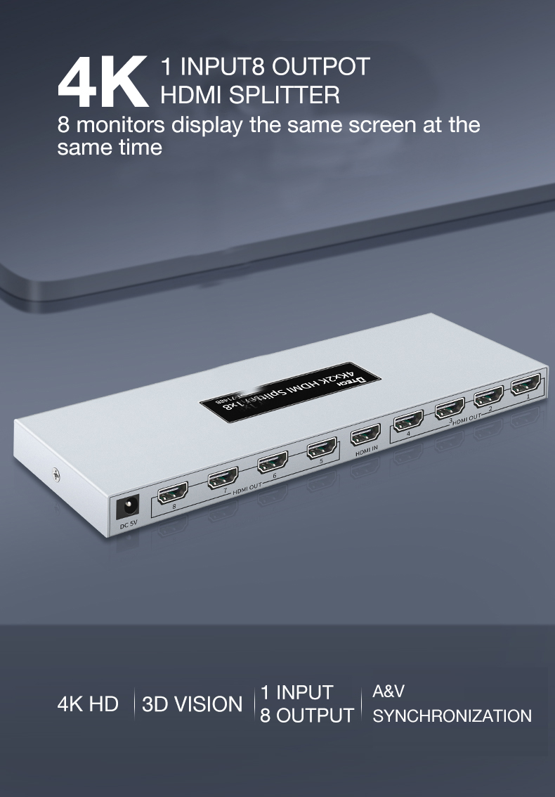 Hỗ Trợ Độ Phân Giải Lên Đến 4K HDMI SPLITTER Bộ Chia Hdmi 1x8